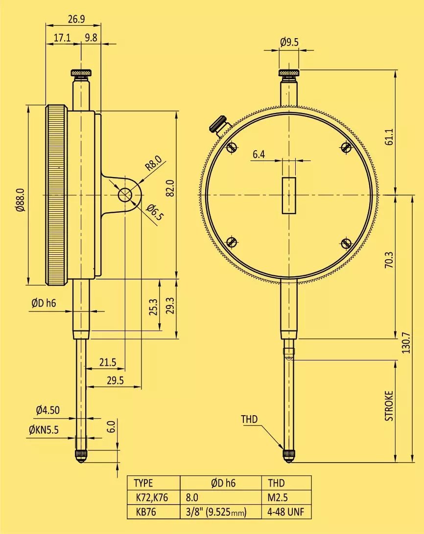 - The one revolution dial gauge eliminates reading errors due to multiple revolutions