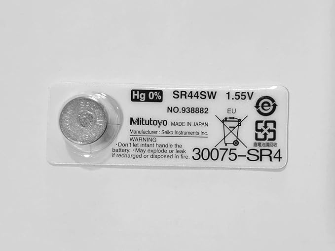 The Mitutoyo 938882 Battery (SR44SW) is used in Calipers, Micrometers, Indicators, Height Gauges, etc., and in various measuring instruments.